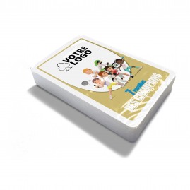 Jeu de 42 cartes + 1 carte présentation + 1 carte règles. Format 58x88mm, coins ronds, personnalisable au dos.